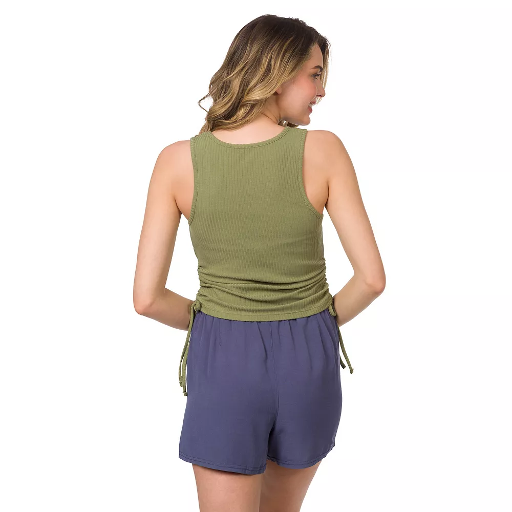 Get a casually cute and comfortable look in this juniors’ drawstring tank top from Hurley.